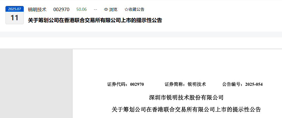 为深入推进深圳市锐明技术股份有限公司(以下简称“公司”)全球化战略布局,加强与境外资本市场对接,提升公司在国际市场的综合竞争实力,进一步提升公司治理透明度和规范化水平,公司目前正在筹划境外发行股份(H股)并在香港联合交易所有限公司(以下简称“香港联交所”)上市事项(以下简称“本次H股发行上市”)。公司正在与相关中介机构就本次H股发行上市的具体推进工作进行商讨,相关细节尚未确定。
