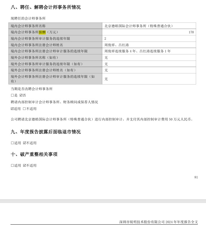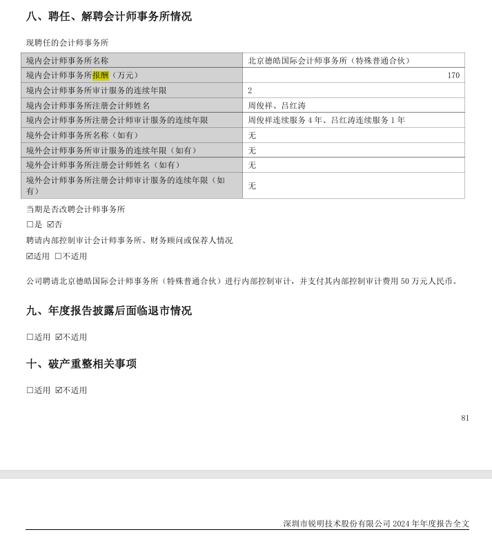 3.变更会计师事务所的原因及情况说明:综合考虑公司实际情况和对未来审计服务的需求,公司不再续聘北京德皓国际担任公司2025年度审计机构,拟聘任毕马威华振担任公司2025年度财务审计机构和内部控制审计机构,聘期一年。公司已就变更会计师事务所事宜与北京德皓国际进行了充分沟通,北京德皓国际对变更事宜无异议。